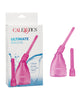 The Ultimate Douche(TM) has a soft and pliable transparent plastic bottle and two detachable interchangeable screw-mount nozzles. The slim sized nozzle is .375" in diameter, and the regular sized nozzle is .5" in diameter. Both nozzles are 3.375" long. Designed for comfort and simplicity, this system is easy to use and easy to clean. Water-soluble lubricant is recommended for the nozzle tips for ease of penetration.