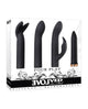 Choose your pleasure with multi-sleeve vibrator kit that gives you five erotic experiences in one! Try the smooth and powerful long bullet design with varying speeds all on its own to drive you wild, and then go over the edge experimenting with four different textured sleeves! Don a new wave of sensations with every new design, from nubs to waves to G-spot curves. Why not get five vibes in one sexy package! Includes 4 texture sleeves made from TPR. Waterproof. Phthalate and latex free. Sleeves are 1.5 inches wide. G-spot tip sleeve is 5.75 inches long, other 3 sleeves are 5 inches long. Requires 1 AAA battery. 5 year warranty.
