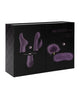 This box features the Vibrating Clitoral Bottom Base which has a slight angle and a pointy bottom. One side is covered with some rousing ribs for extra stimulation. The base boasts a 10 speed motor that will rev up the vibrations to a toe-curling 15,000rpm - all at less than 60 dB Noise Level. This generous box features three interchangeable attachments: a Clitoral Vibrator, a Beaded Vibrator and a Rabbit vibrator. Just click the attachment into the base, twist and play! The Clitoral Vibrator attachment has a beautiful pointed head with two side-wings for extra stimulation. The Beaded Vibrator attachment opens up a whole world of possibilities. With 4 different balls, going up in diameter, the orgasmic world is at your fingertips! Use it vaginally or anally, the choice is yours! The Rabbit vibrator attachment has a flattened head for G-spot stimulation and two vibrating ears to give the clitoris some extra attention. Both base and attachments are made from medical grade silky-smooth silicone and ABS. Color - Black