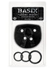 The BASIX Rubber Works Universal Harness includes 3 silicone rings. Easy to adjust and fun to use for sexy strap-on play. Most of our BASIX dildos are Strap-On ready and Harness Compatible. Includes small (1.2") Medium (1.6") and Large (2") Silicone rings. Phthalates free and made of PVC.