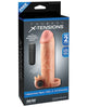 Turn your penis into an instant pleasure machine with the incredible Fantasy X-tensions. Now you can be all the man you can be and satisfy your partner with this easy-to-use erection enhancer. Developed as a safe, affordable, non-surgical alternative to expensive medical procedures and pills, your Fantasy X-tension will give you the biggest, thickest, most satisfying pleasure rod you ever imagined! Perfect for men with ED and midway performance problems, your new enhancer will deliver results that both partners will love! Intensify pleasure for both of you with The Perfect 2" Extension with Ball Strap. With the ball strap wrapped snug around you, you'll prolong ejaculation for the most explosive climax you've ever imagined. Your partner will enjoy deeper penetration with the 2" extension at the tip, while the ultra-lifelike shaft makes you 33% thicker to offer a fuller feeling and exceptional climax. It's super-stretchy to accommodate most sizes, is tight enough to help you last longer, and the super-soft Fanta Flesh material feels like a second skin--only better! One size fits most. This is not a condom. Item measurements: Length: 7.5" (19 cm), Width: 1.75" (4.4 cm), Inner diameter: 1.1" (2.7 cm).