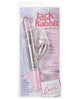 Cal Exotics Petite Jack Rabbit with incredible thrusting and rotating power. Rabbit has 10 intense functions of vibration, pulsation and escalation. 4 patterns of synchronous rotating and thrusting action. 3 solid rows of non-jamming rotating beads. Easy push-button controls with auto off. Level: Intermediate. TPR (rabbit) ABS and ABS with Metallic Plating (controller). 5" x 1.25"/12.75cm x 3.25cm (shaft). 2.5" x 1 "/6.25cm x 2.5cm (rabbit). Requires 3 AAA Batteries.