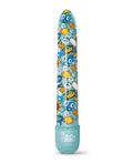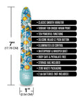 Classic smooth vibrator with vibrant fun and unique print.  10 powerful functions. Silicone inlaid ez push button. Illuminated LED control. Body safe.  Waterproof and whisper quiet.