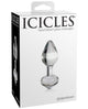 Elegant, upscale, and hand-crafted with amazing attention to detail, this luxurious line of glass massagers will leave you breathless. Each hand-blown Icicle glass plug is sleek, unique, and made to play hard. This luxurious glass plug is perfect for anal beginners, featuring a tapered tip to ease insertion, a bulb that provides extra sensation, and a narrow neck that allows your muscles to wrap around and hold it in. The ergonomic design of the base ensures it won't slip too far inside while still fitting comfortably between your cheeks. The hypoallergenic glass is nonporous and body safe, and when cared for properly, is designed to last a lifetime. Run the plug under warm water or place it in the microwave to heat things up. Chill it under cold water or put it in the freezer for a cool sensation. Since glass is nonporous, cleanup is a snap. Use Pipedream Toy Cleaner and warm water, or put it in the dishwasher for a worry-free wash after the fun. Insertable Length: 2.5 in. (6.5 cm). Width: 1 in. (2.5 cm)