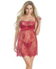 Lightly Padded Demi Cup & Fine Lace Skirt Babydoll & Adjustable Crotchless Panty Merlot Lg