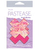Hot Pink & Matte Pink Color Changing Sequin Heart Nipple Pasties by Pastease(R) are hand-made in the USA of reversible sequin material that forms to curves and resists wrinkling over hardening nipples. Just peel-and-stick on clean, dry skin! All Pastease(R) pasties feature latex-free, medical-grade, waterproof adhesive that stays securely in place for as long as you like and until they are gently removed. Conceal or Reveal with Pastease(R) nipple pasties when worn with a sexy outfit, daring bikini, sheer top, revealing dress, Hefty bag, body lotion, crazy costume, party theme or nothing at all! Dimensions: 3 inches wide x 2.5 inches tall Coverage: 1.8 inches