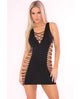 Pink Lipstick brings you the summer! The mesh dress made of nylon sits almost like a second skin, the embroidery of hemp leaves leaves Festival feelings arise. The special highlight: Your new dress lights up in the black light! Color: Green Material: 93% nylon, 7% spandex One size. Bust: 31in.-37in. Waist: 23in.-29in. Hip: 33in.-39in. Cup: B/C. Dress size: 4-12.