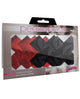 Peekaboos Premium Pasties. Wear more revealing fashions! Cover up with style! Lasts as long as you do. Dance all night without even a slip. Fun as a flirty fashion add-on or just as premium pasties. Contains two pairs of premium self-adhesive pasties. Stolen Kisses Hearts Red and Black.