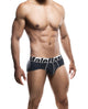 Contrast taping along leg openings with encased elastic for a custom fit.