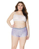 Crotchless Thong W-pearls H...Crystal Pink Buffalo Check Print Deep V, Cage Back Panty Teddy Grey-pink Os-xl