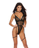 Peony Paradise Underwire Br...Floral Lace and Mesh Cami w/Attached Garters & Thong - Black QN