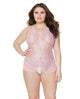 Lace Bralette & High Waist ...Lace & Mesh Underwire Cup & Snap Crotch Teddy W-garters Mauve 3x-4x
