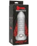 Make it big - slide into the Jacked Up Thick Extender for increased length and girth. Soft and stretchy to perfectly hug your shaft, Jacked Up Thick stretches eight inches from its ball-teasing base to a firm head in a sheer, frosted material that looks and feels incredible. The extender's ribbed, studded interior stimulates the penis, while the attached ball strap holds it in place and tugs at the balls for added pleasure with every thrust. Kink by Doc Johnson is an exciting collaboration with Kink.com to create a collection of high-quality authentic fetish items suitable for long-term practitioners and new initiates alike. From Doc Johnson.