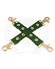 Spartacus PU Hog tie with gold hardware is an elegant bondage restraint system.