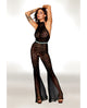 Seamless Crochet Lace Bodystocking w/Fishnet Bellbottoms - Black QN